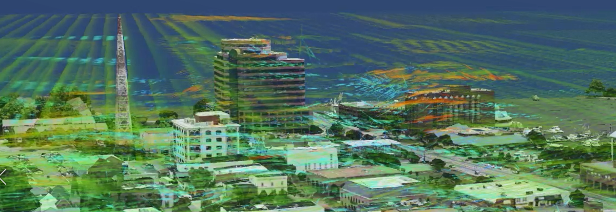 TruWeather Solutions software simulates and display winds, allowing analysis to identify optimal locations for weather sensors that will support drone operations. Orange areas depict high wind speeds that would not be forecasted by existing weather reporting methods without additional sensing instruments.