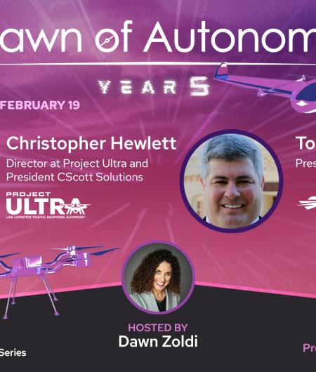 Join us this week on The Dawn of Autonomy with Tom Swoyer Jr., President of GrandSKY, and Chris Hewlett, Director of Project ULTRA (UAS Logistics, Traffic, Response, Autonomy), as ""Data-Driven Ops"" month continues, sponsored by Airspace Link. Tom's efforts have significantly contributed to North Dakota's robust flight test, regulatory and operational UAS ecosystem. Chris, a retired Navy commander, brings 30 years of expertise in aviation operations, safety, modernization, system optimization for next-generation aviation systems and evaluating both developing and deployed aviation command and control systems.