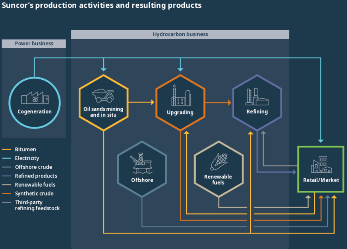 Beyond oil and gas, Suncor is Alberta’s third-largest electricity producer. It generates power through cogeneration facilities that feed both its operations and the provincial grid.