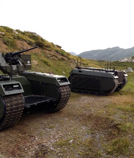 Described as a “multipurpose tracked vehicle,” the fifth generation THeMIS can be equipped with a variety of warfighting technologies such as weapon systems, tethered drones and IED detection devices. Having already been sought out for a number of payload integration projects, the UGV has had a dozen different systems integrated into it through collaborations with partners such as Kongsberg, FN Herstal, MBDA, and ST Engineering. Thus far, live firing tests have been conducted with five different weapon systems, including an anti-tank missile launcher.
