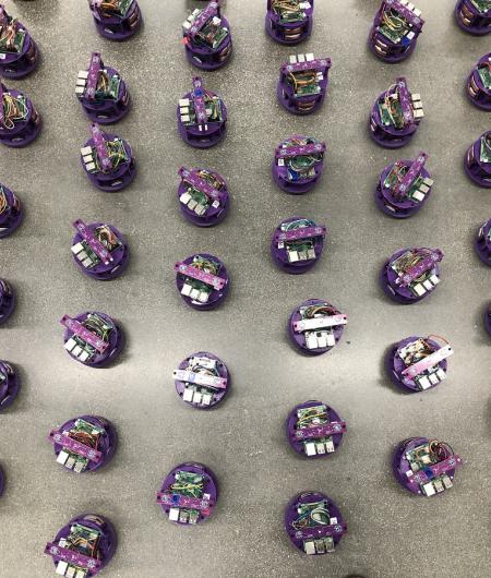 Below: Northwestern University researchers have developed the first decentralized algorithm with a collision-free, deadlock-free guarantee. Using the algorithm, robots reliably, safely and efficiently converged to form a pre-determined shape in less than a minute. Photo: Northwestern University