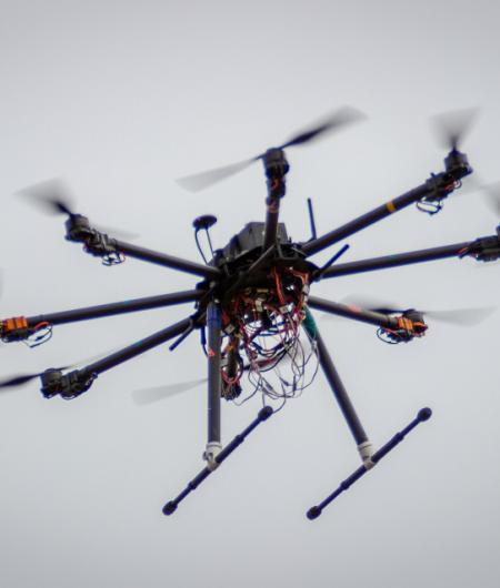 “The idea is that in the future, on a larger scale, there can be a fleet of unmanned helicopters that can go out and put out forest fires, thereby lowering loss of life,” Steil says.