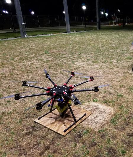 To fire the nail gun, the team started by measuring the force needed to compress the point of the nail gun, which has to be done before a nail will deploy. After this, the team wrote software that would enable the UAS to apply that force.