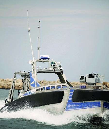 Elbit Systems’ multi mission USV, named Seagull, performed a live demonstration of a remotely operated Anti-Submarine Warfare (ASW) mission. Via Satellite Communication (SATCOM), the Seagull USV performed the operational ASW mission using control consoles located approximately 3,515 kilometers away in Elbit Systems' booth at the DSEI Exhibition in London. The Seagull USV was sailing in the Haifa Bay, Israel during the demonstration. (Elbit Systems)