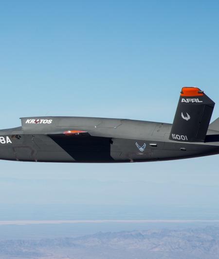 The XQ-58A is a result of a collaborative effort between the Air Force Research Laboratory and Kratos Unmanned Aerial Systems.