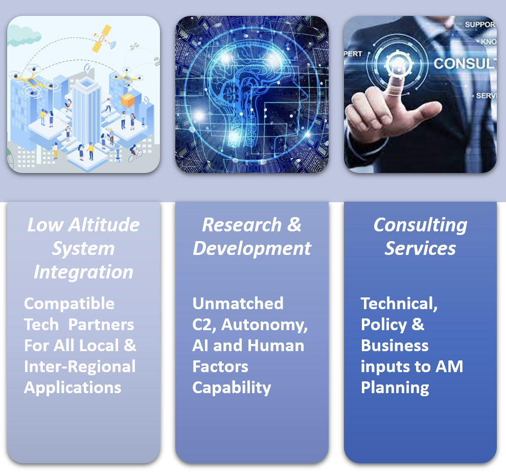 Parallax Advanced Research, a 501(c)3 nonprofit based in Beavercreek, Ohio, is a leader in building collaborations between innovators in private industry, academia, and the U.S. Government that propels science and technology innovation fulfilling mission critical national security needs and developing Ohio’s innovation economy. Parallax is also an expert in AAM/unmanned aerial systems (UAS) research and development, low altitude airspace management systems integration, and consulting for policy, technology, and public acceptance.