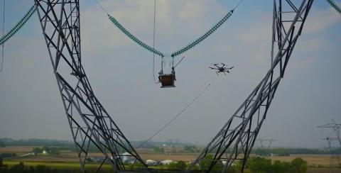 In cooperation with an investor owned utility, Sharper Shape and SkySkopes recently used a Sharper A6 UAS to “string sock lines for a 675 kV line construction project.”